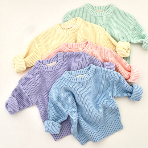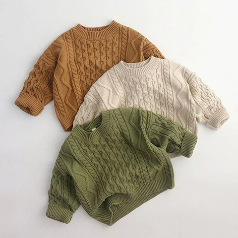 Mùa Đông Tùy Chỉnh 100% Cotton Bé Lỏng Đan Bé Cậu Bé Cô Gái Quần Áo Vòng Cổ Trẻ Em Toddler Chàng Trai Áo Thun Áo Len